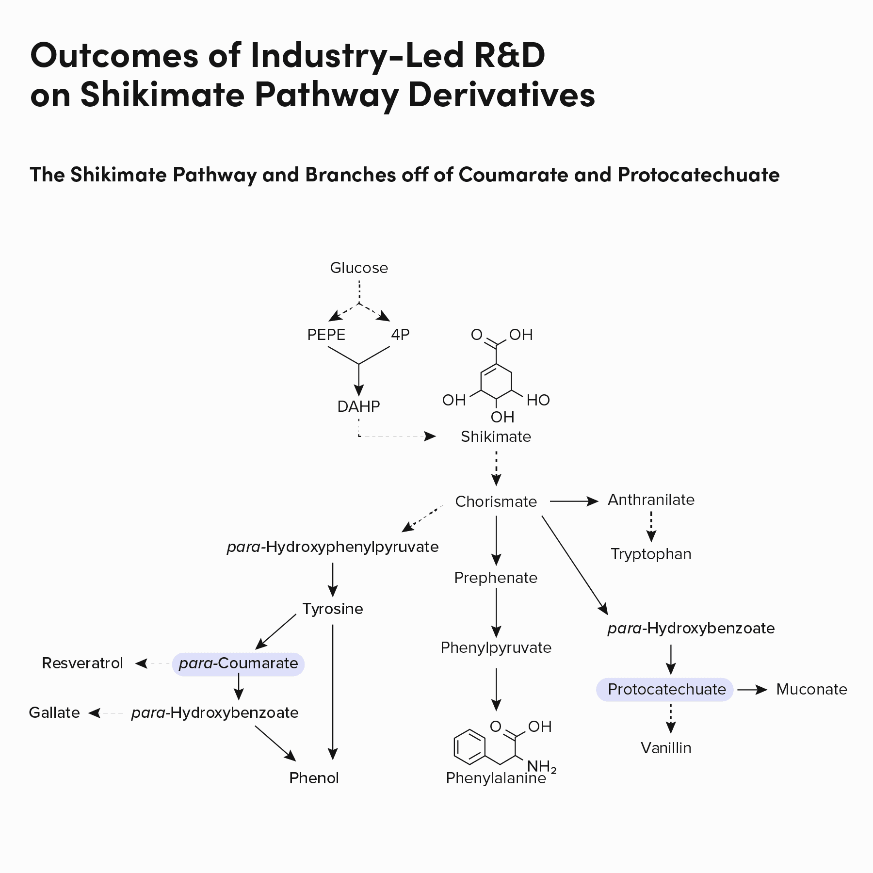 Finally, a third program aims to produce two aromatic molecules, bio-based intermediates for materials, in yeast. This program similarly leverages an advanced starting point – a yeast chassis strain with significant flux through a shared precursor: protocatechuate.